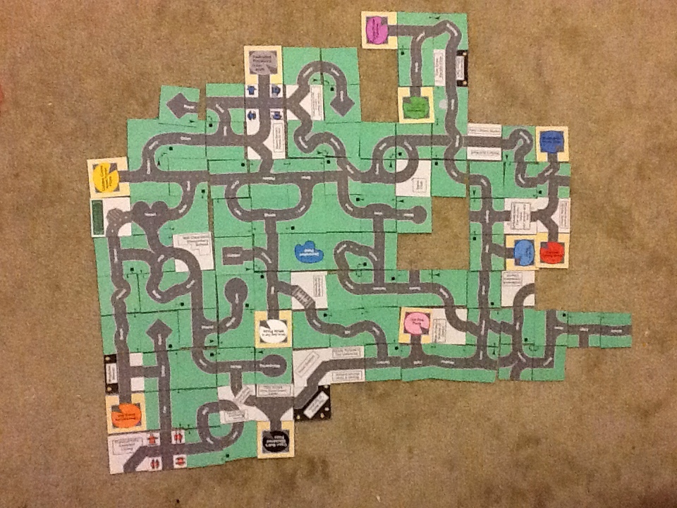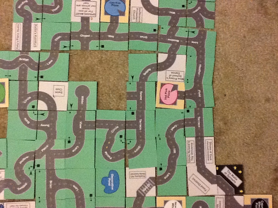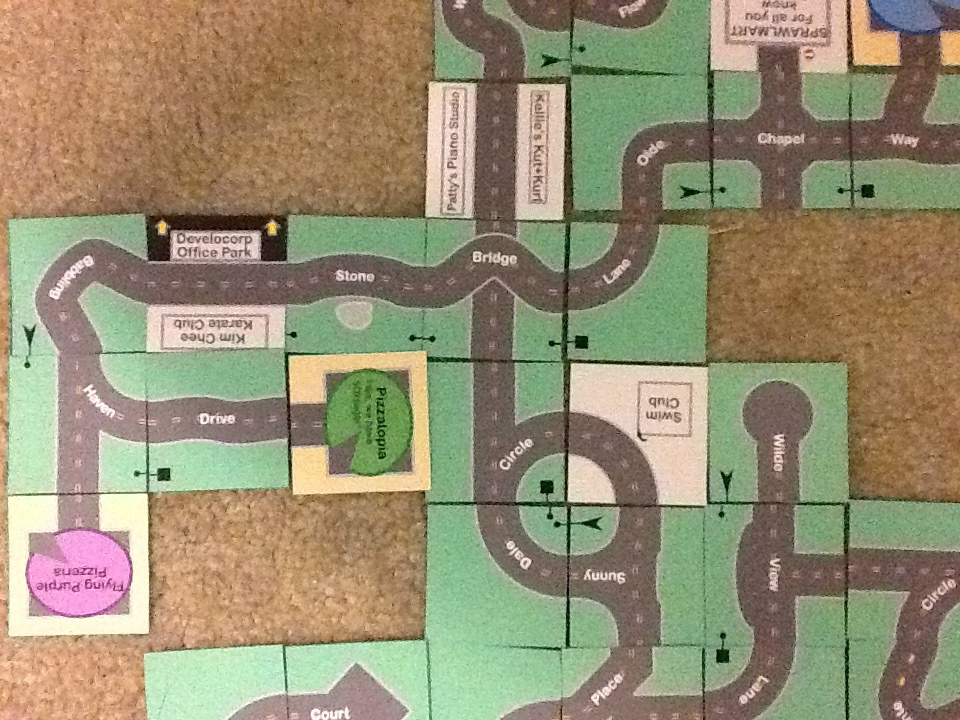 This is one of my favorite games. I like to build these maps using the cards I designed in 2001. I must have built hundreds of suburban developments by now, but I have never posted enough photos to give a clear idea of what this free card game is really like.