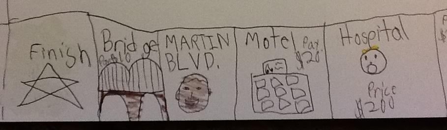 Nicholas announced on Monday morning that he had decided what we would do for the holiday: He would make a board game about Martin Luther King, Jr., and then we all would play it together. He spent several hours making the game board while I washed dishes, packed up Christmas decorations, and did other chores.