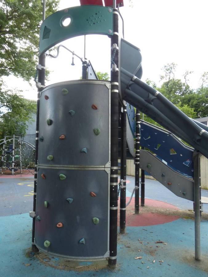 Nontrivial playground climbing wall.