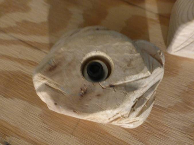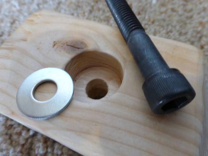 For the mounting holes, I used a Forstner bit to make a recess in each hold, sized to fit a washer, then drilled a big hole through the middle of that space for the bolt itself.