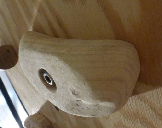 My research/shopping had revealed some wooden training boards and many wooden campus boards, so why not carve a range of wooden holds? Wood can sometimes split or splinter, but it’s otherwise easy to work; wood ages gracefully; many kinds of wood are (almost) non-toxic; and I had plenty of scrap wood. I wouldn’t have to spend anything at all, for as many climbing holds as I could use. Take that, expensive product!