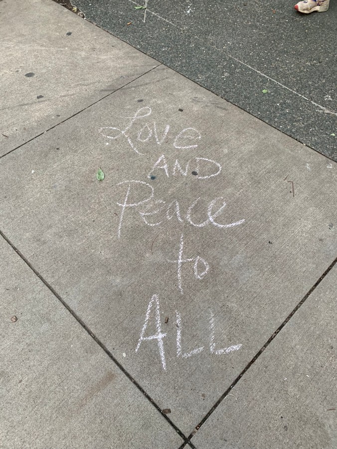 Then the song again, that same song we’d been singing for blocks so that it had inevitably taken on a droning tone. Now it was in a much more upbeat tempo, with drums, and it was just . . . just such a clear reminder of everything we humans share, music and spirituality and motivation and finding hope.